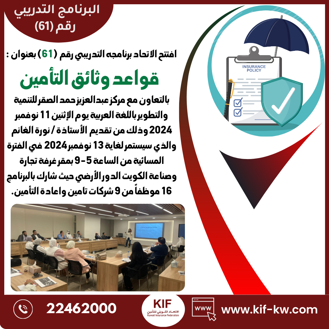 البرنمج التدريبي رقم (61) قواعد وثائق التأمين