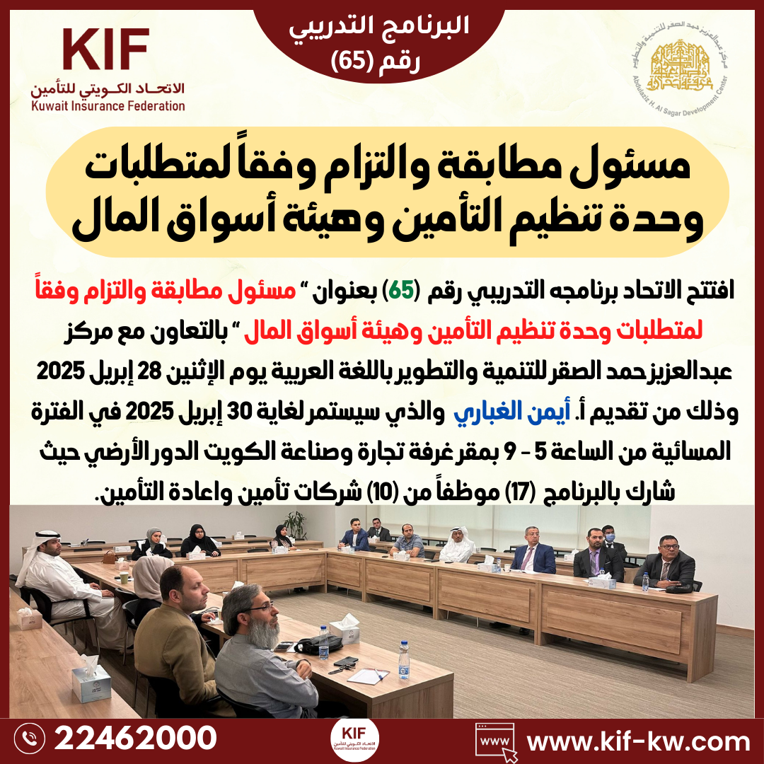 البرنامج التدريبي رقم (65) مسئول مطابقة وإلتزام
