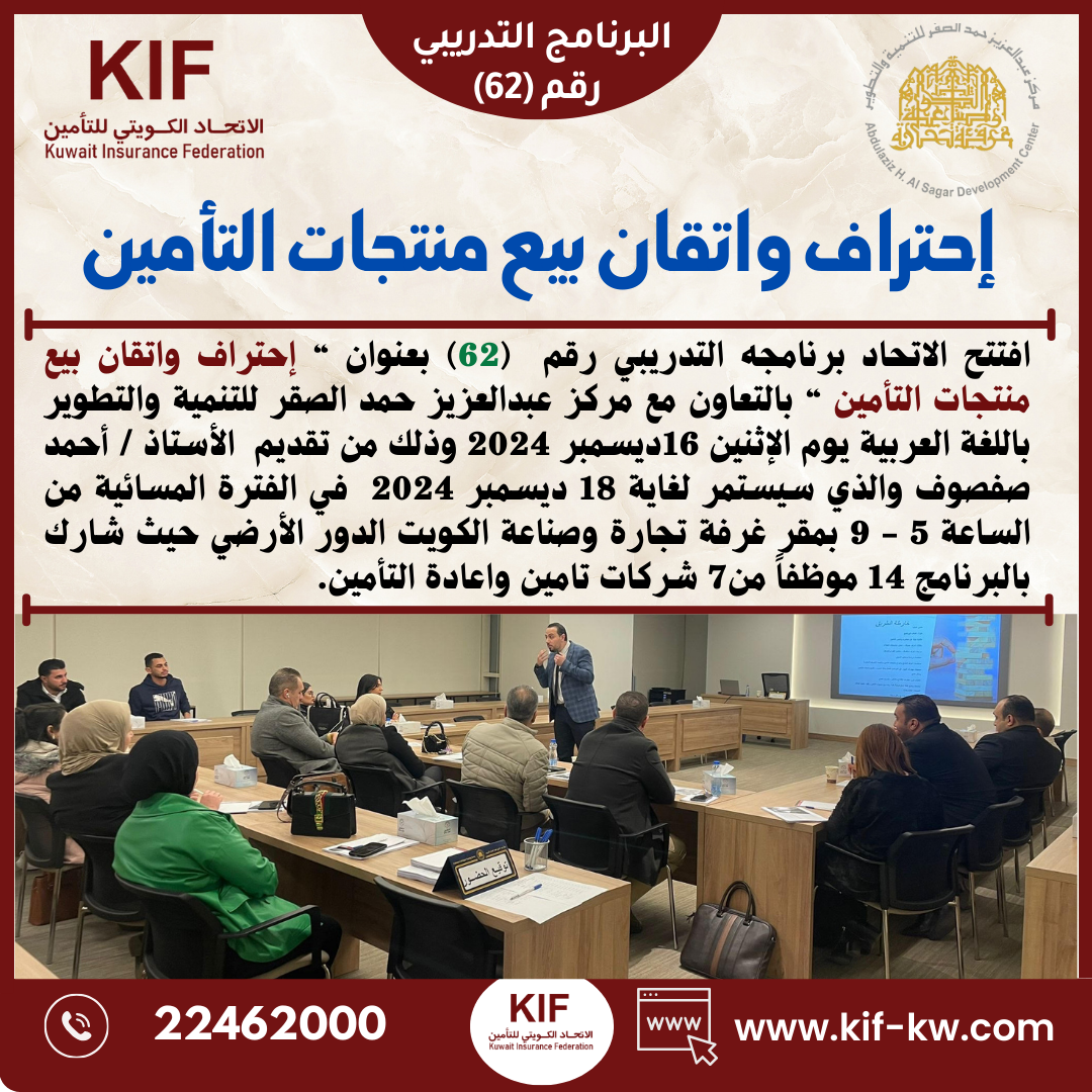 البرنامج التدريبي رقم (62) احتراف واتقان بيع منتجات التأمين