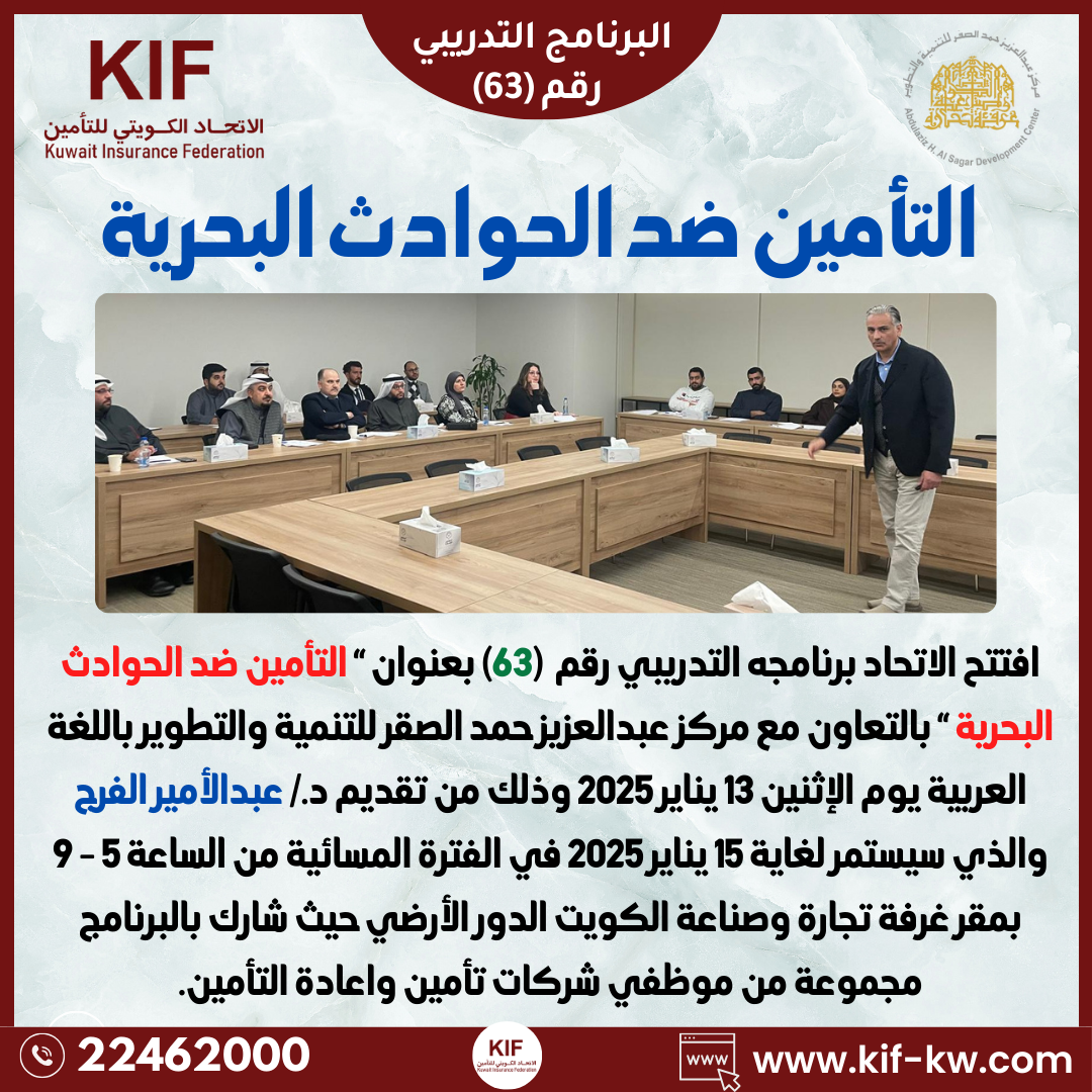 البرنامج التدريبي رقم (63) التأمين ضد الحوادث البحرية