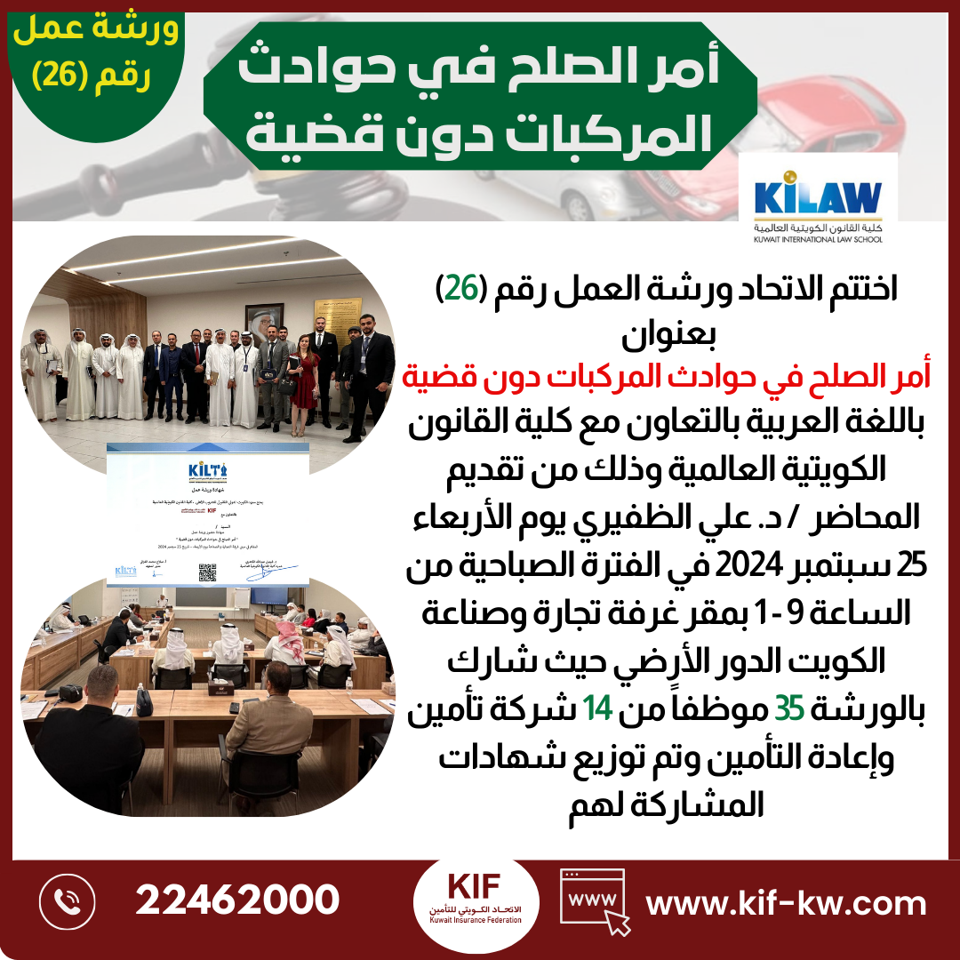 ورشة العمل رقم (26) أمر الصلح في حوادث المركبات دون قضية