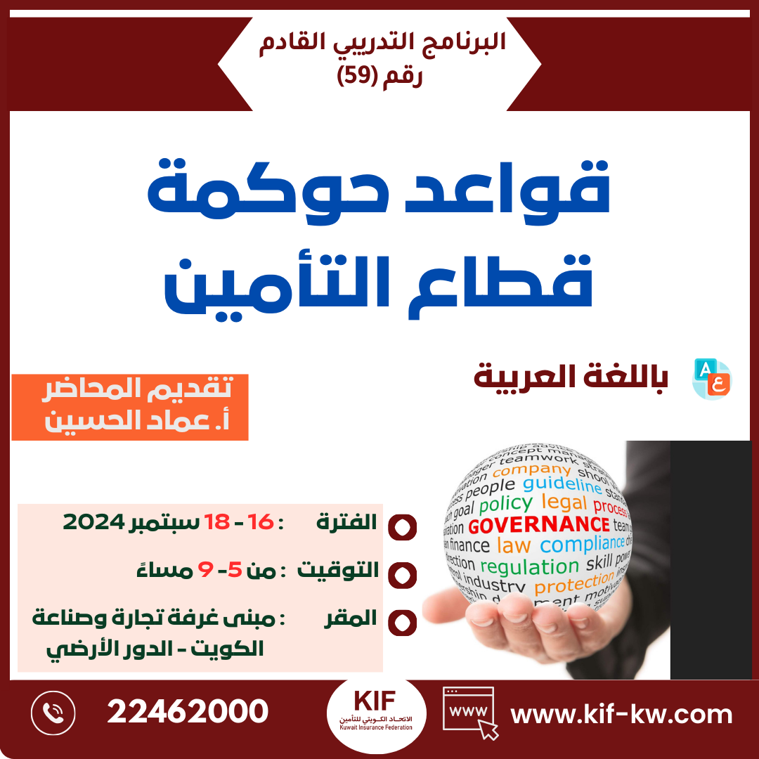 البرنامج التدريبي رقم (59) قواعد حوكمة قطاع التأمين