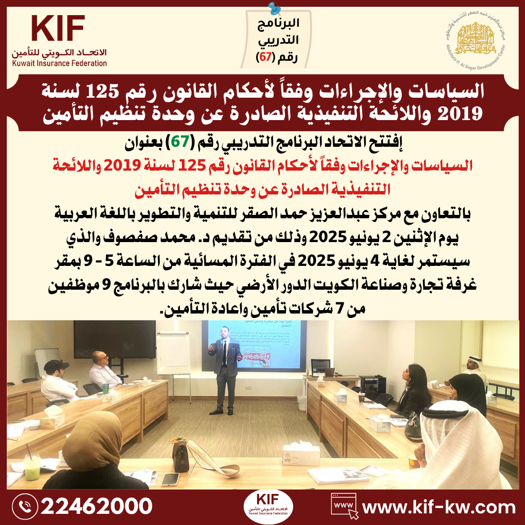البرنامج التدريبي للاتحاد رقم (67) السياسات والإجراءات وفقاً لأحكام القانون 125 لسنة 2019