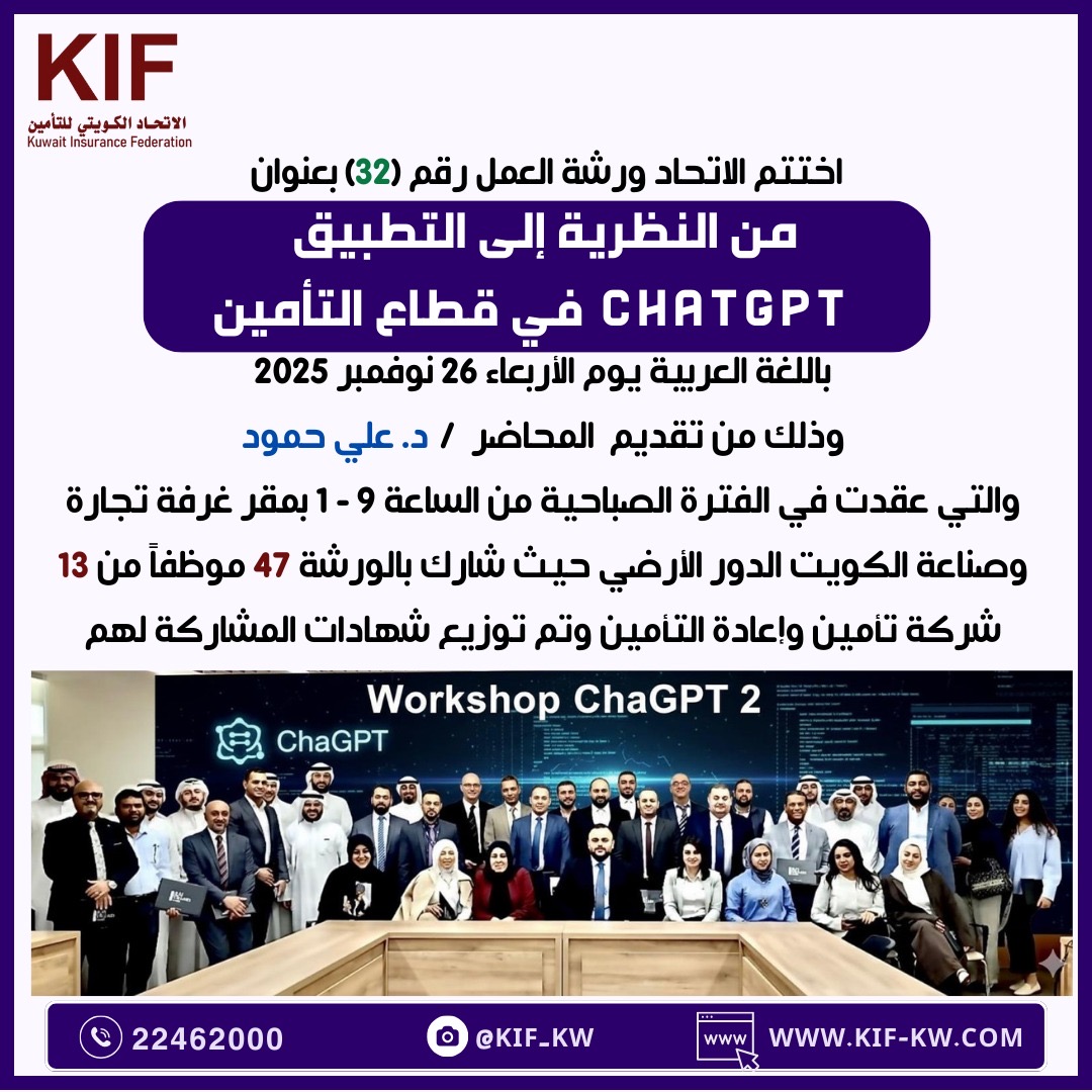 اختتام ورشة العمل رقم (32) من النظرية إلى التطبيق: ChatGPT في قطاع التأمين